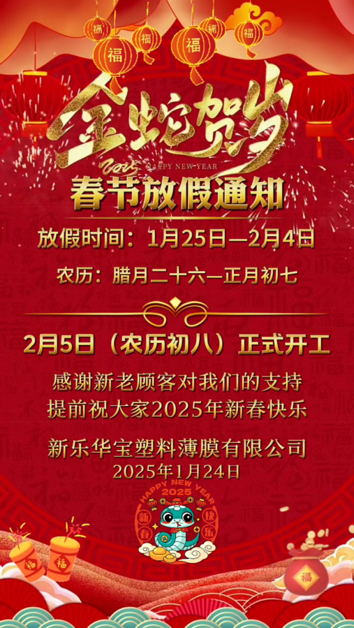 2025年春節放假通知
